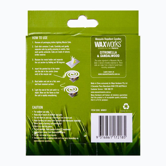 Waxworks Citronella And Sandalwood Mozzie Coils - Insect Repellent